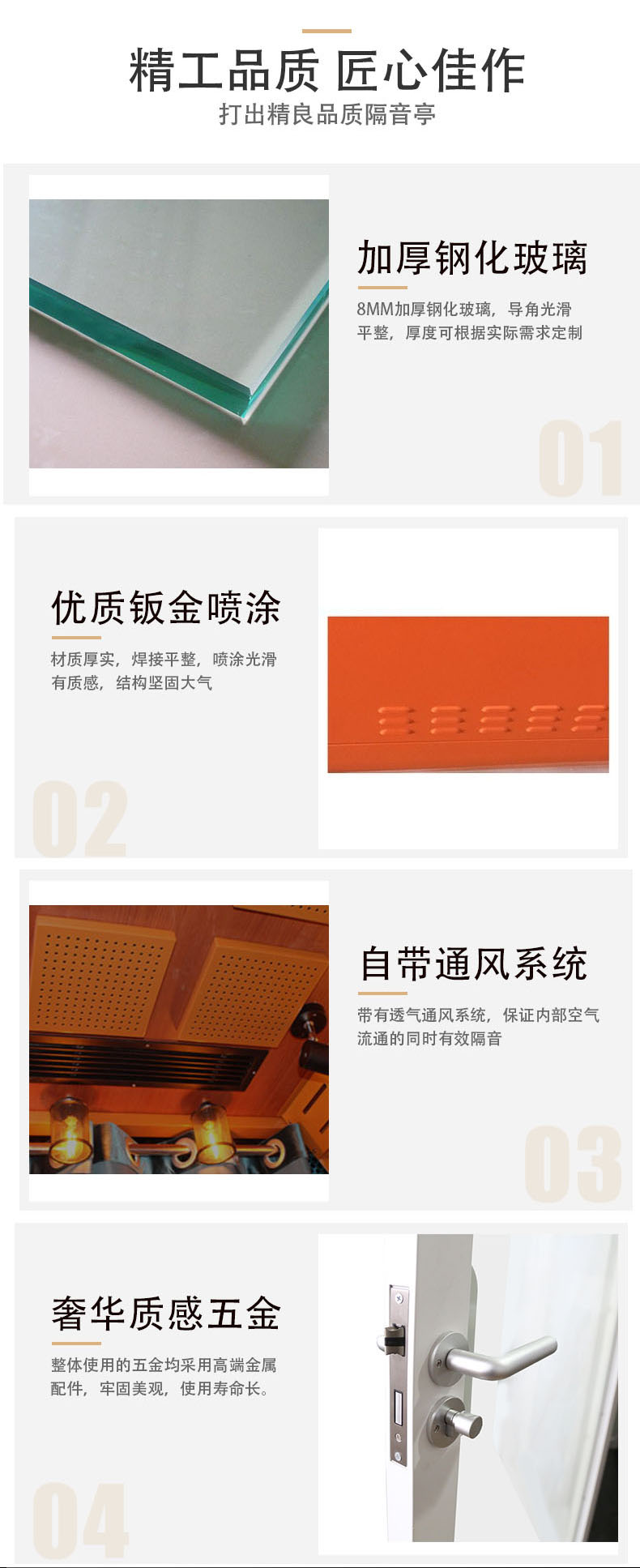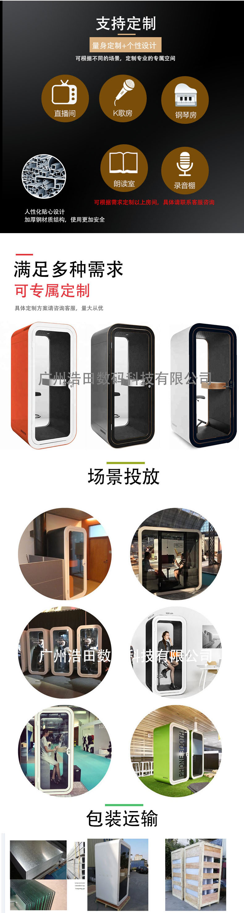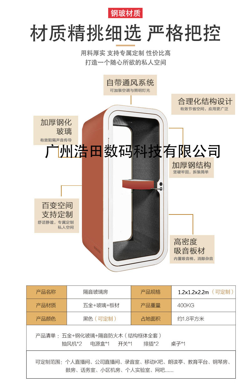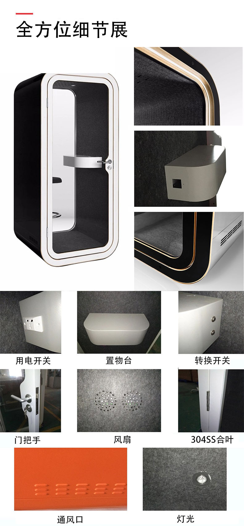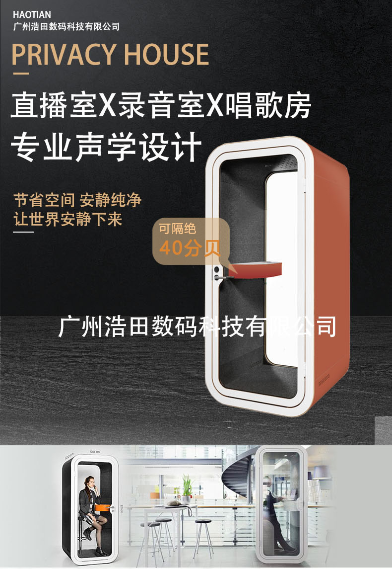 產品特點:隔音亭單人款占地1平方,小巧方便,美觀大方。