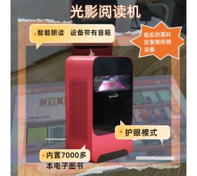 產品特點:“光影閱讀機”是最新研發的一款集電子期刊、電子圖書、電子報紙閱讀,同時集成了優質聽書資源為一體的智能終端設備。利用激光投影和成像技術,把畫面投影到桌面、幕布等素材上,可以實現23到100寸大小超高清展示,支持十點觸控操作,是一款超現實的黑科技智能終端設備。
