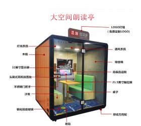 產品特點:浩田朗讀亭是集朗讀、練習、錄制、訓練等功能為一體的朗讀設備,滿足了日常人們朗讀的精神追求。 朗讀亭擁有海量朗讀資源以及豐富的背景音樂可選,也可自帶書本文稿進行自由朗讀??梢栽O置在單位、圖書館、文化館、博物館、機場、高校、中小學、公園景點等地方。這款朗讀亭的尺寸是200*172*220cm,空間足夠寬敞,可以容納四人。
