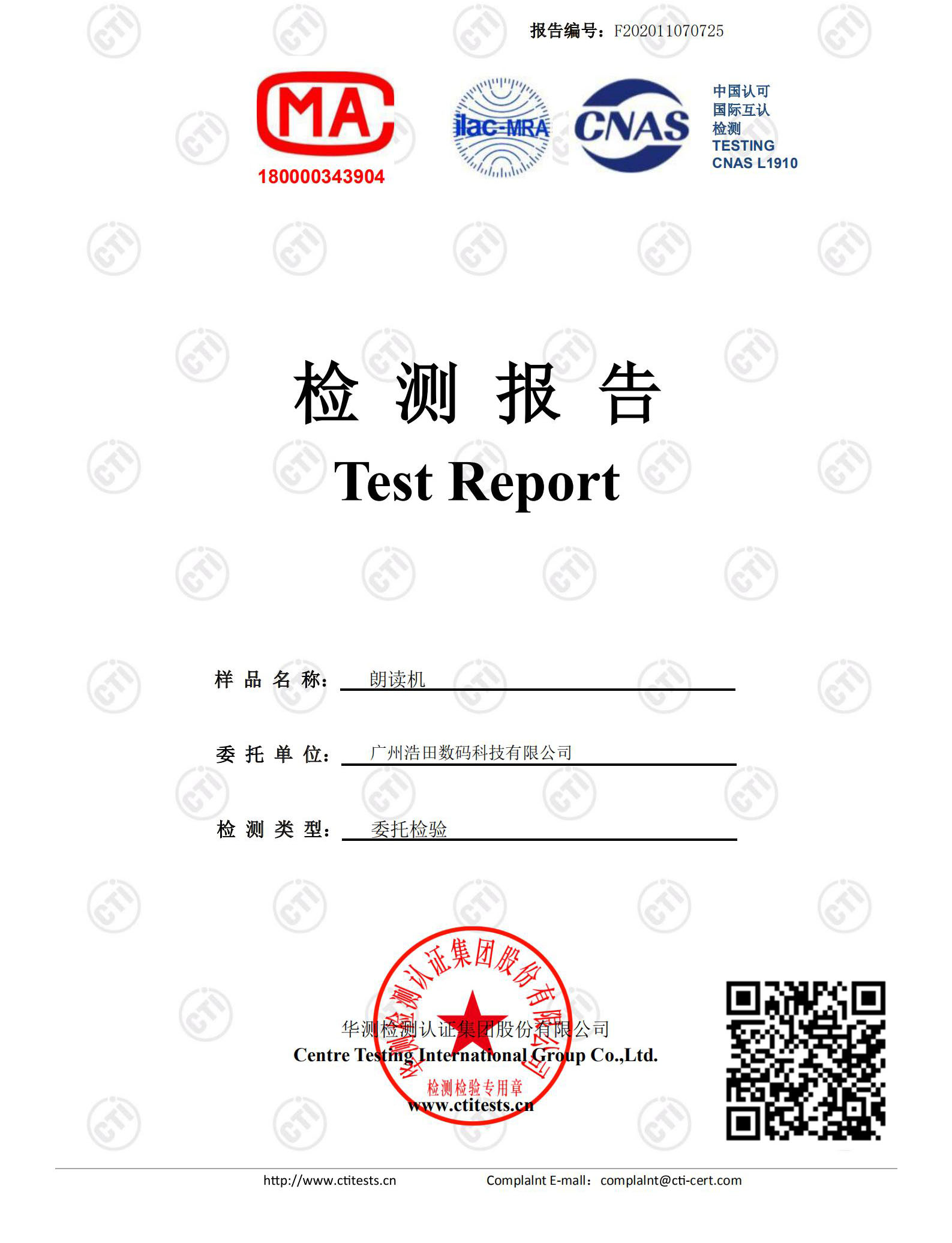 朗讀亭檢測報告