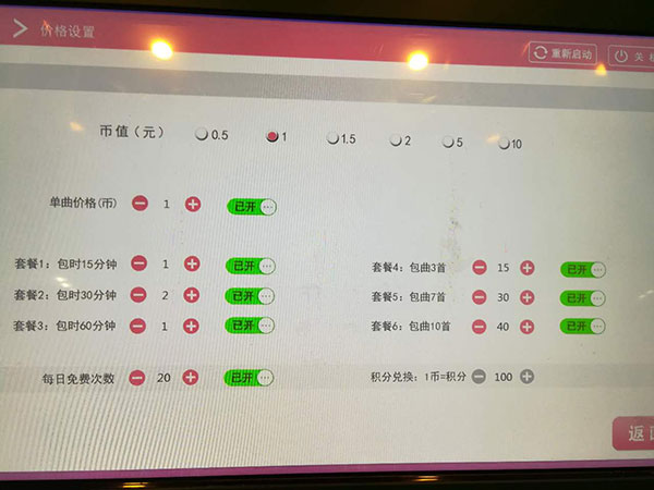 2.設置投幣收費金額多少錢一首,單曲收費等模式,一般設置6-10塊一首歌即可