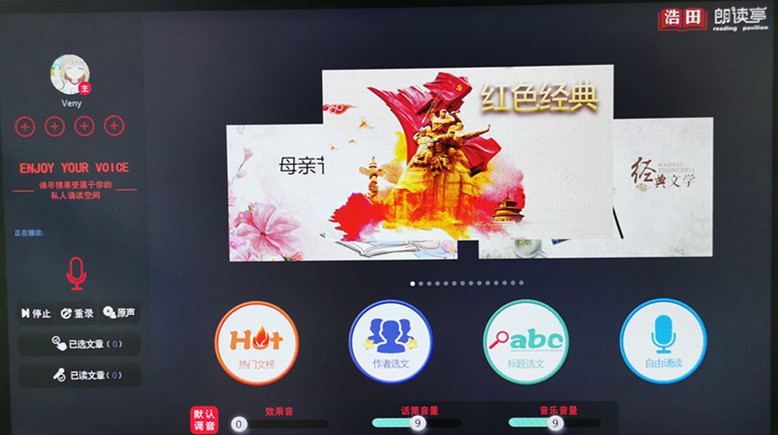 浩田朗讀亭為了慶祝祖國的70歲生日,添加了大量的愛國素材,如:紅色家書、習近平總書記系列講話、詩作、慶祝新中國成立70周年、建黨98周年等主題。