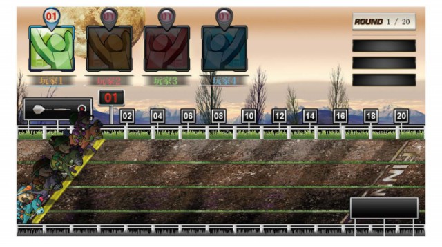 投中自己的馬所在的分區(qū)來讓馬前進(jìn), 投中一倍跑一部, 投中兩倍跑兩步, 以此類推, 若有玩家跑完20個分區(qū)便獲勝, 若無則跑在最前面者獲勝。