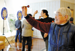 每年在寧波舉行的“格威杯”飛鏢積分賽,電子飛鏢機又重新派上用場,比賽分為幾個小組進行對決比賽,其中,老年組的比賽往往顯得格外受人矚目,其實很多人都訝異,老年人,身體走路都不利索,怎么玩飛鏢這種時尚性娛樂性較強,感覺比較接近年輕人的范圍的游戲呢?