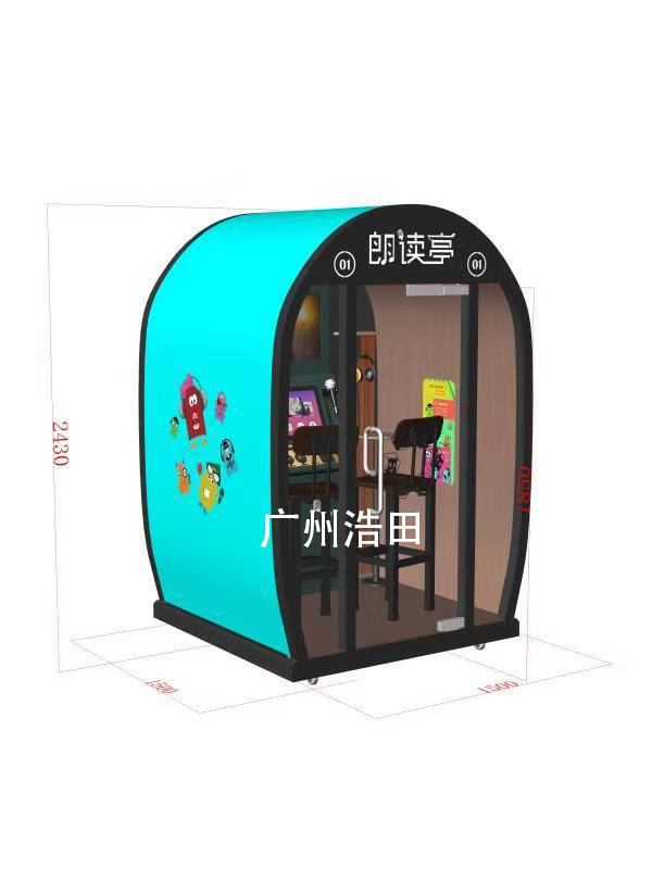 浩田,一家集數碼軟件開發,生產制造為一體的現代化高科技綜合性企業。工廠主要生產機器設備有自助迷你ktv、朗讀亭、傾訴亭、移動琴房、辦公室隔音亭、專注商場|電影院|學校等場景一站式硬件+軟件開發。