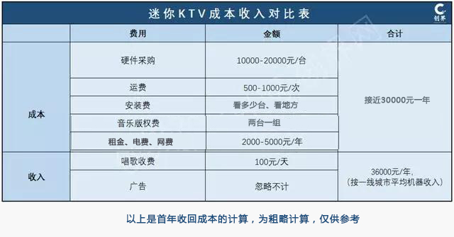 迷你KTV成本和收入對(duì)比表